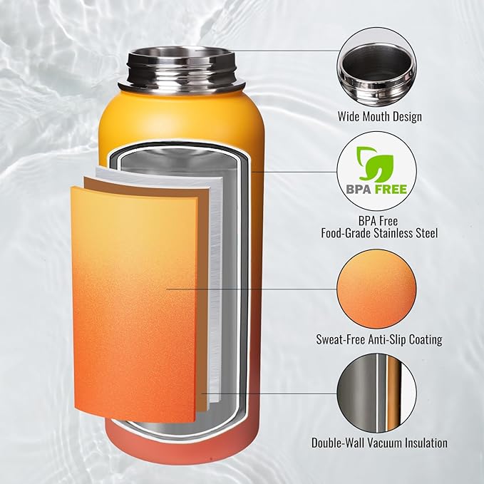 Premium Materials: Made from BPA-free, food-grade 304 stainless steel with a sweat-proof, non-slip coating.